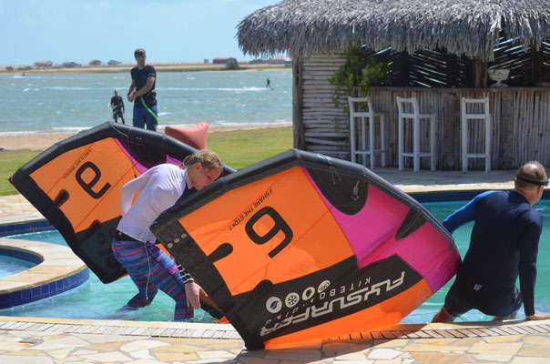 Ausgestattet mit den neusten Kites und Boards unserer Lieferanten können wir bei allen Bedingungen Spaß haben und unser Können verbessern